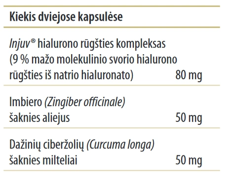 Injuv® hialurono rūgšties kompleksas (9% maþo molekulinio svorio hialurono rūgšties iš natrio hialuronato) 80 mg*